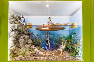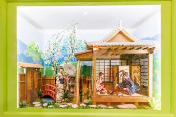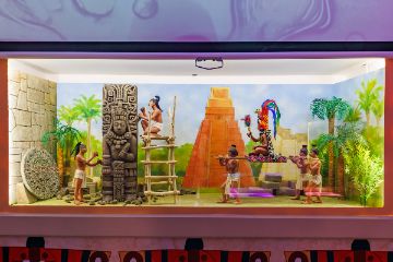 Обязательно обратите внимание на инсталляции за стеклом - там вы увидите композиции из жизни народности, которой посвящен каждый конкретный домик.